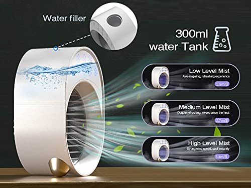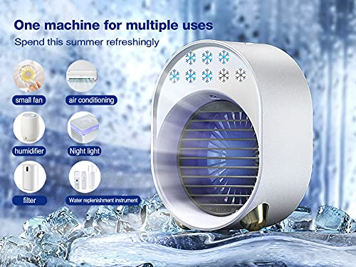 ❄ Réglage de la vitesse du vent à 3 blocs : design multifonctionnel 4 en 1, non seulement un joli refroidisseur d’air, mais aussi un mini ventilateur, un humidificateur, des lumières décoratives LED, des lumières d’ambiance colorées en circulation peuvent facilement le trouver la nuit, l’effet de refroidissement est remarquable, qui peut vous aider à mieux dormir.