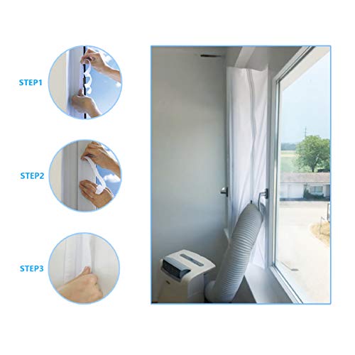 Installation Rapide et Facile: Pas besoin de percer des trous. Il suffit de coller le tissu d’étanchéité à l’intérieur du cadre de la fenêtre et de la fenêtre elle-même. Pincez ensuite le tuyau d’air dans le joint de fermeture fenêtre à l’aide d’une fermeture à glissière et scellez le tuyau à l’aide d’un serre-câble pour évacuer le flux d’air vers l’extérieur.